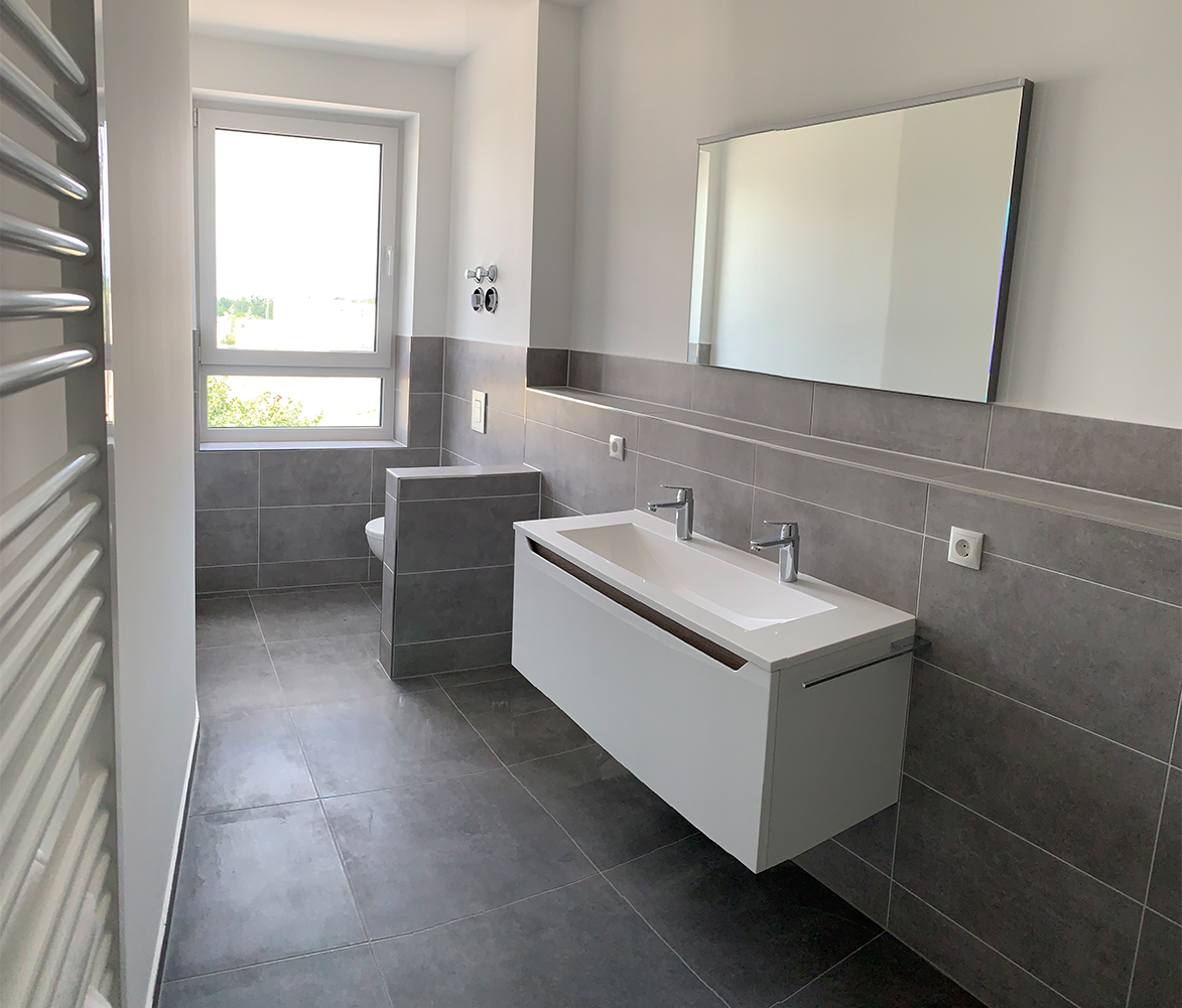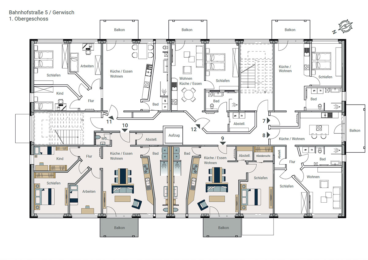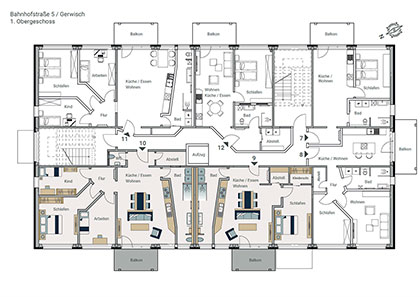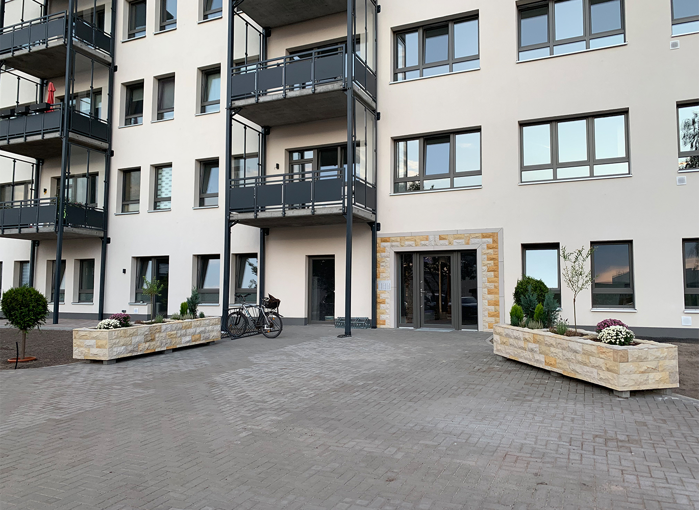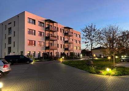 Wir haben für Sie im Bestand, in den Jahren 2018 2019 errichtet, 24 hochmoderne Wohnungen mit schnellster Glasfaser-Internetanbindung, geringstem Energieverbrauch (Erdwärmeheizung kombiniert mit großer PV Anlage auf dem Dach erfüllt KfW-Standard 55), Fußbodenheizung, hellen Räumen mit großen Fensterfronten, großen Balkonen oder kleinen Gärten, Fahrstuhl, hochwertigen modernen Materialien, barrierearmer Nutzung innen und außen, vielen Parkplätzen (frei und überdacht, auch behindertengerecht und mit e-Ladestation), jede Wohnung mit Nobilia-Küche, moderner Bad-Grundausstattung und separatem Abstellraum.